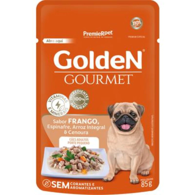 SACHE GOURMET GOLDEN CÃES PEQUENO PORTE FRANGO 85 G
